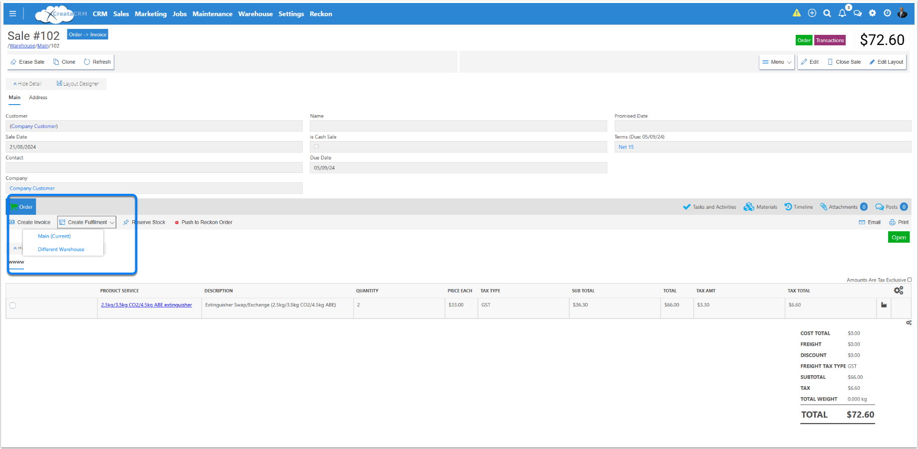 Transactions with CreataCRM - Sales Order - Taking Stock Off